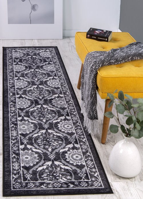 • DURABLE COMFORT: Machine-made from stain-resistant and stylish 100% Nylon, this durable area rug is designed for comfort and style. With a low pile height, this floor rug offers cushioned comfort without being too bulky.